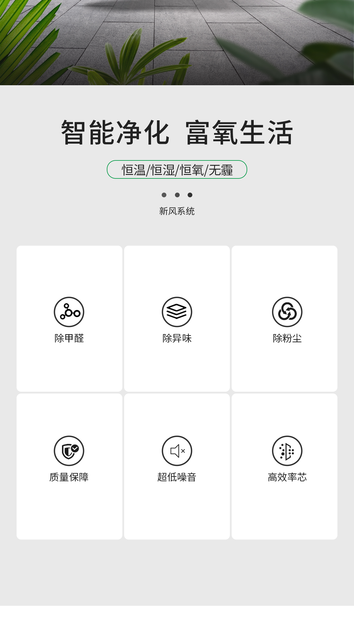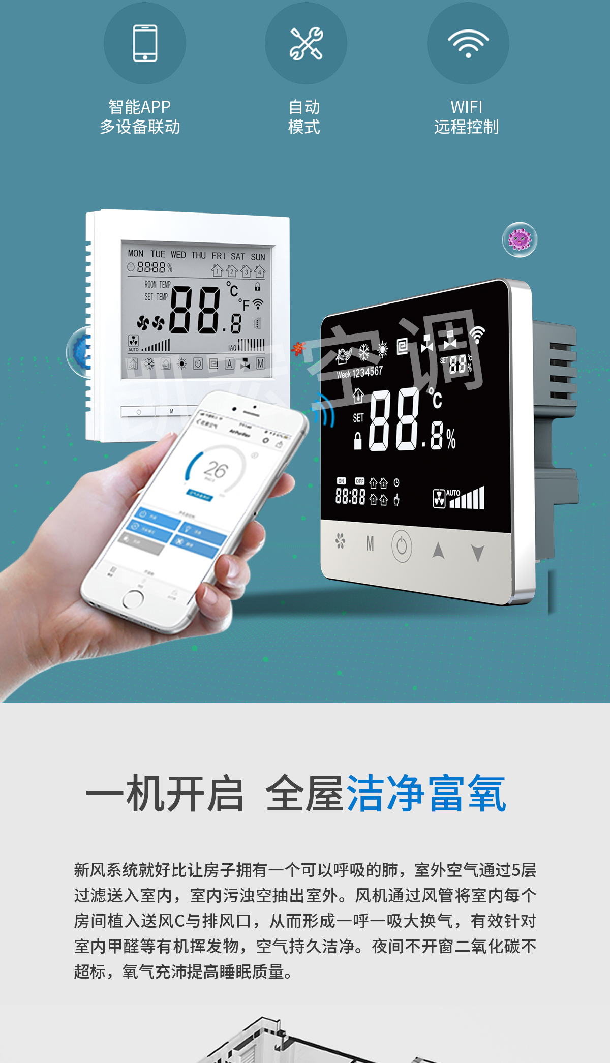 雙向換氣 室內(nèi)外氣體等量置換。獨特的熱交換器設(shè)計,把室內(nèi)污濁空氣與室外新鮮空完全分開,防止室內(nèi)外空氣交叉污染 靜音設(shè)計,安全可靠 內(nèi)置低噪音外轉(zhuǎn)子離心風(fēng)機,機組璧覆有新型吸聲材料,運行平穩(wěn)噪音低,防止了對現(xiàn)場的干擾。整機除風(fēng)機外無運動部件,幾乎無需維護,可確保長期穩(wěn)定可靠工作 過濾凈化功能 進入室內(nèi)的空氣在機組中經(jīng)專業(yè)級過濾器過濾,有效防止灰塵和有害物質(zhì)進入室內(nèi),保持室內(nèi)空氣新鮮,同時可選用靜電凈化器、負離子發(fā)生器、光觸媒等凈化設(shè)備