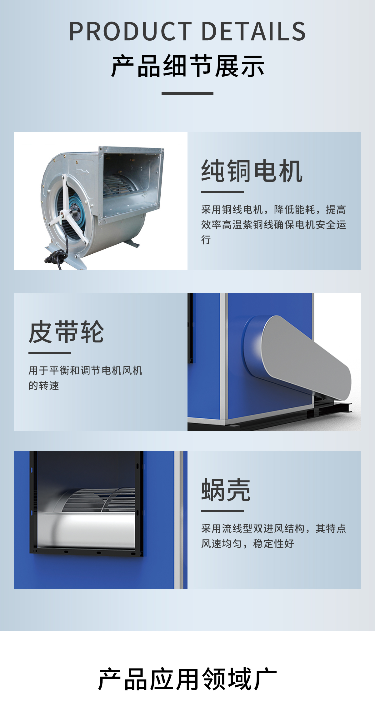 HTFC系列風機廣泛應用于廠礦企業的車間、辦公樓及公共建筑的地下室、賓館、博物館、影劇院等需要消防通風換氣的場合使用,既可送風又可抽風 輸送氣體內的雜質:氣體內不許有粘性物質,所含的塵土及硬質粒物不大于150mg/m3 輸送氣體的溫度:經耐高溫試驗,在煙氣溫度大于280°C高溫情況下,連續運轉40分鐘以上,達到消防排煙目的