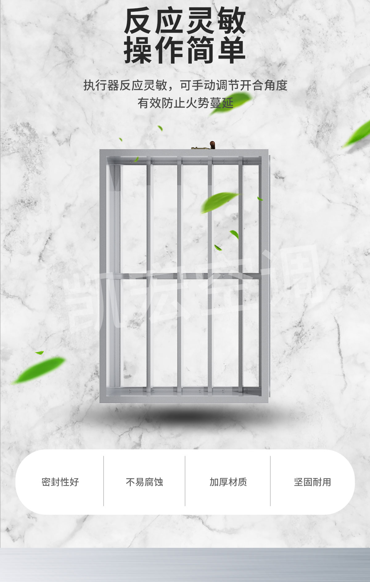安裝在機械排煙系統各支管端部(煙氣吸入口)處,平時呈關閉狀態并滿足漏風量要求、火災或需要排煙時,手動或電動打開起排煙作用的閥門。