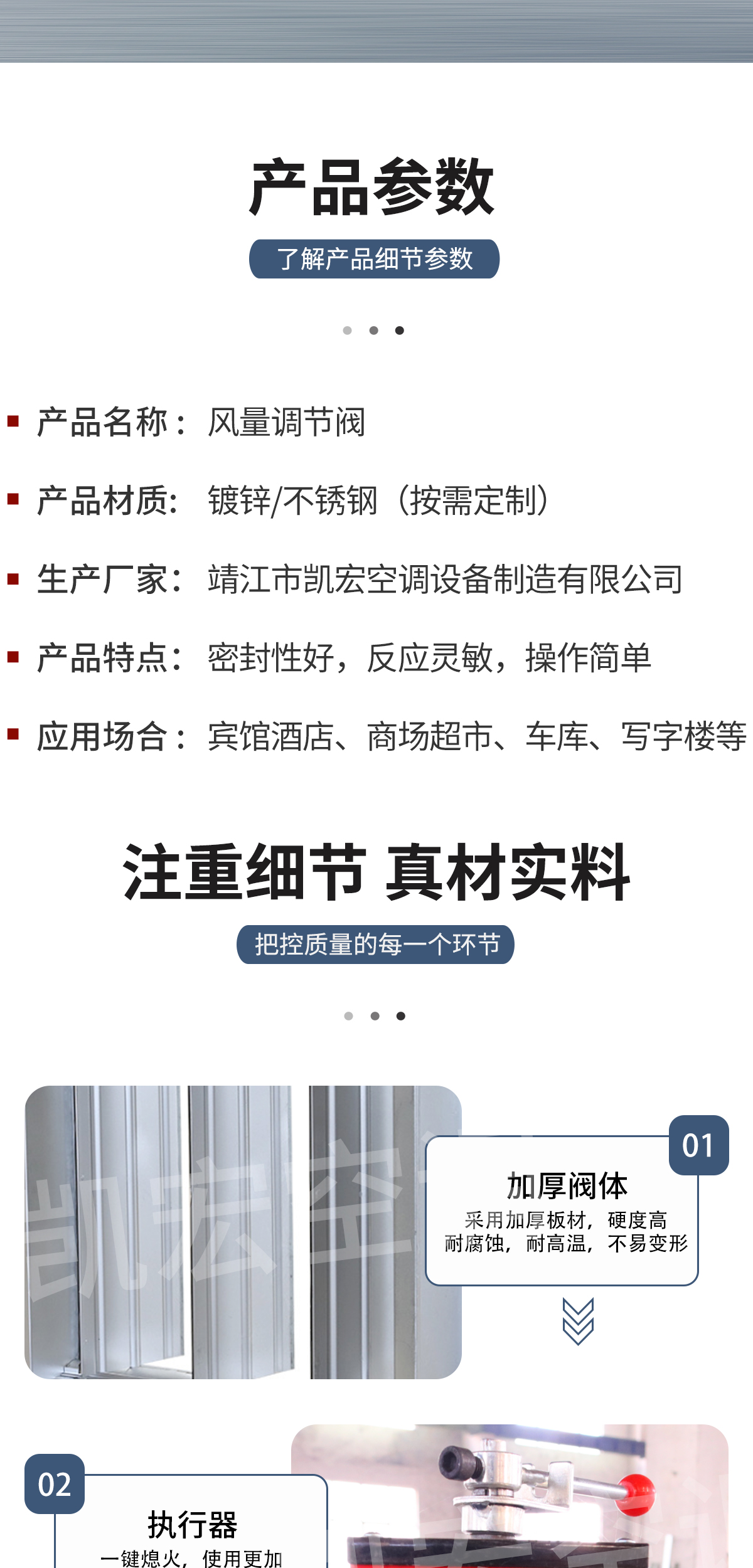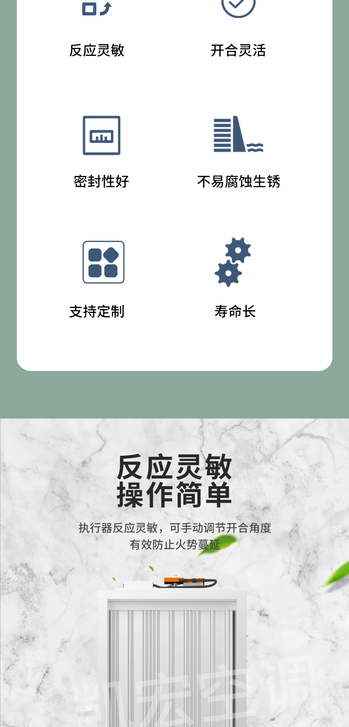 對開多葉風量調節閥一般用在空調通風系統管道中,用來調節支管的風量,也可用于新風與回風的混合調節。該閥分為手動和電動兩種,電動可以自動控制調節風量與自控系統配套。