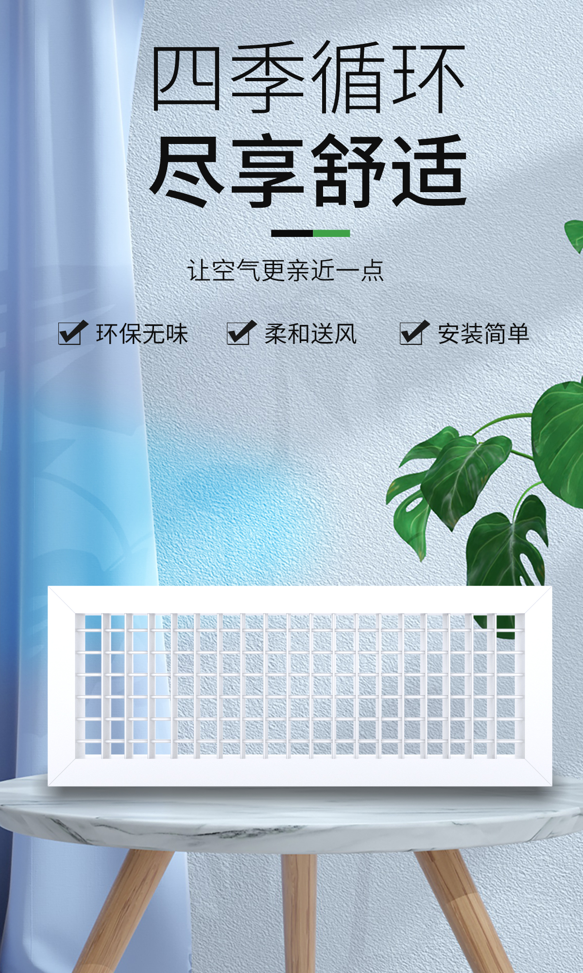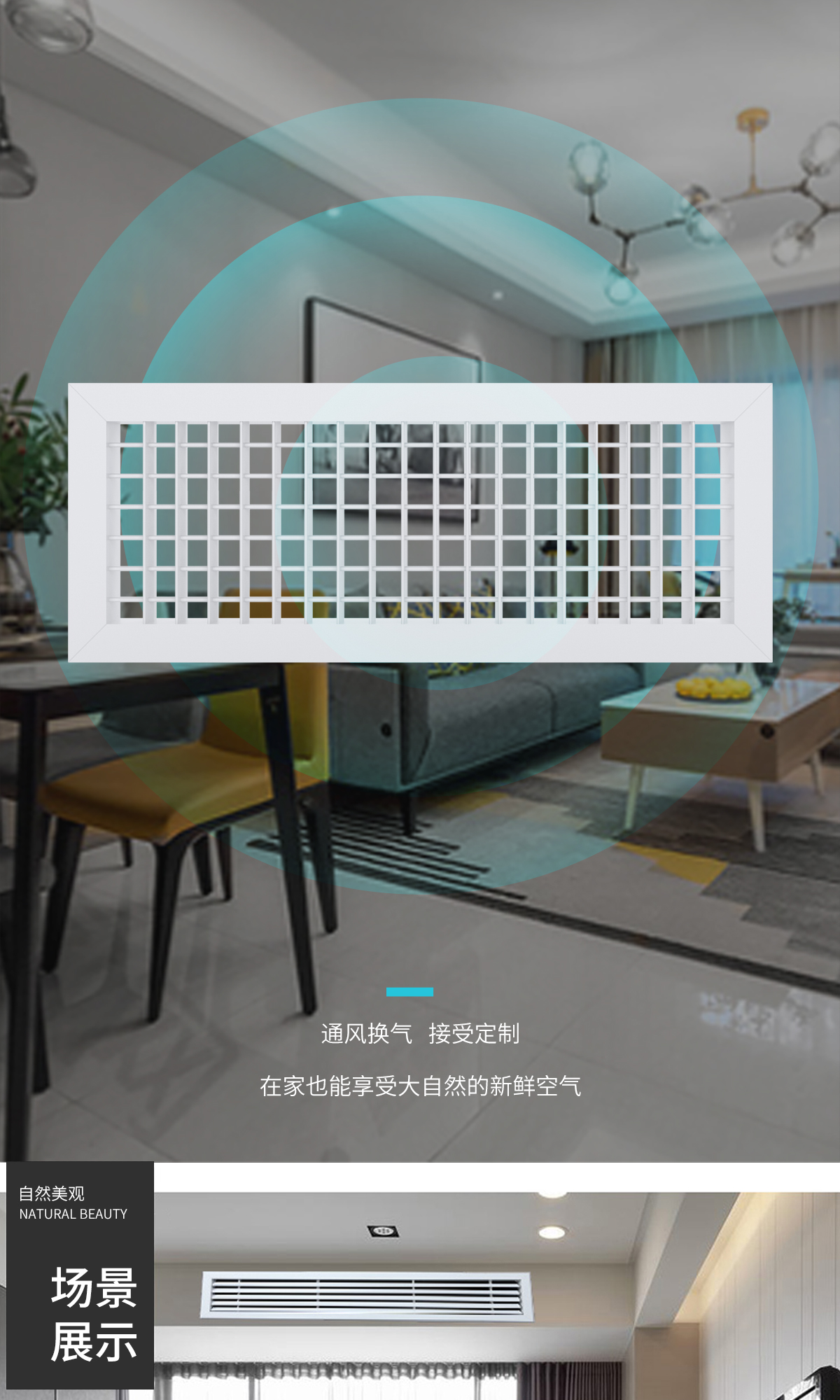 調節百葉式送風口 可直接與風機盤管配套使用 尺寸由用戶選定 可用于中央空調系統的末端,葉片角,度可在任意范圍內調節,葉片在不同角度,可得到不同的送風距離和不同的擴散角