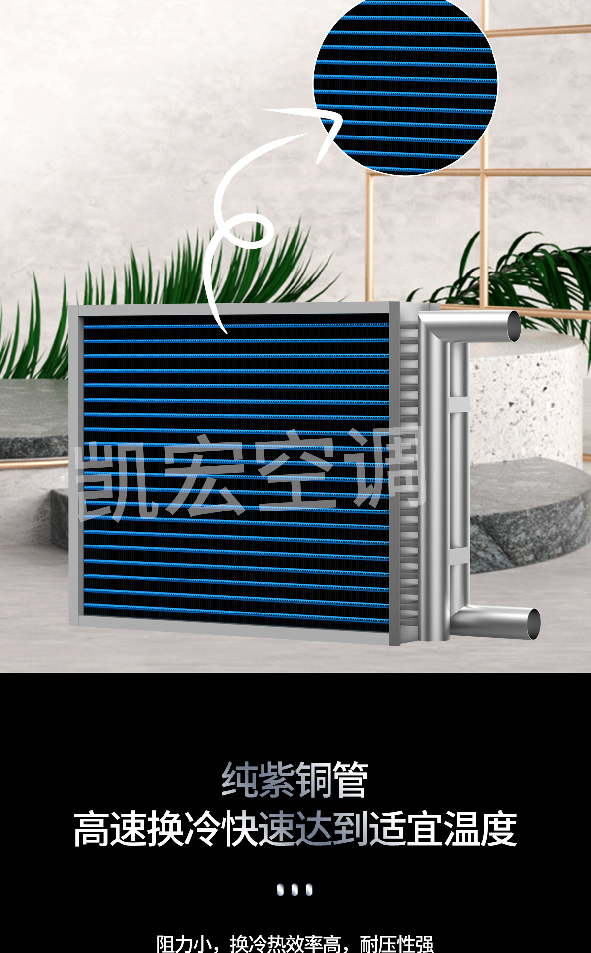 全稱表面式冷卻器,其原理是讓熱媒或冷媒或制冷工質流過金屬管道內腔,而要處理的空氣流過金屬管道外壁進行熱交換來達到加熱或冷卻空氣的目的。